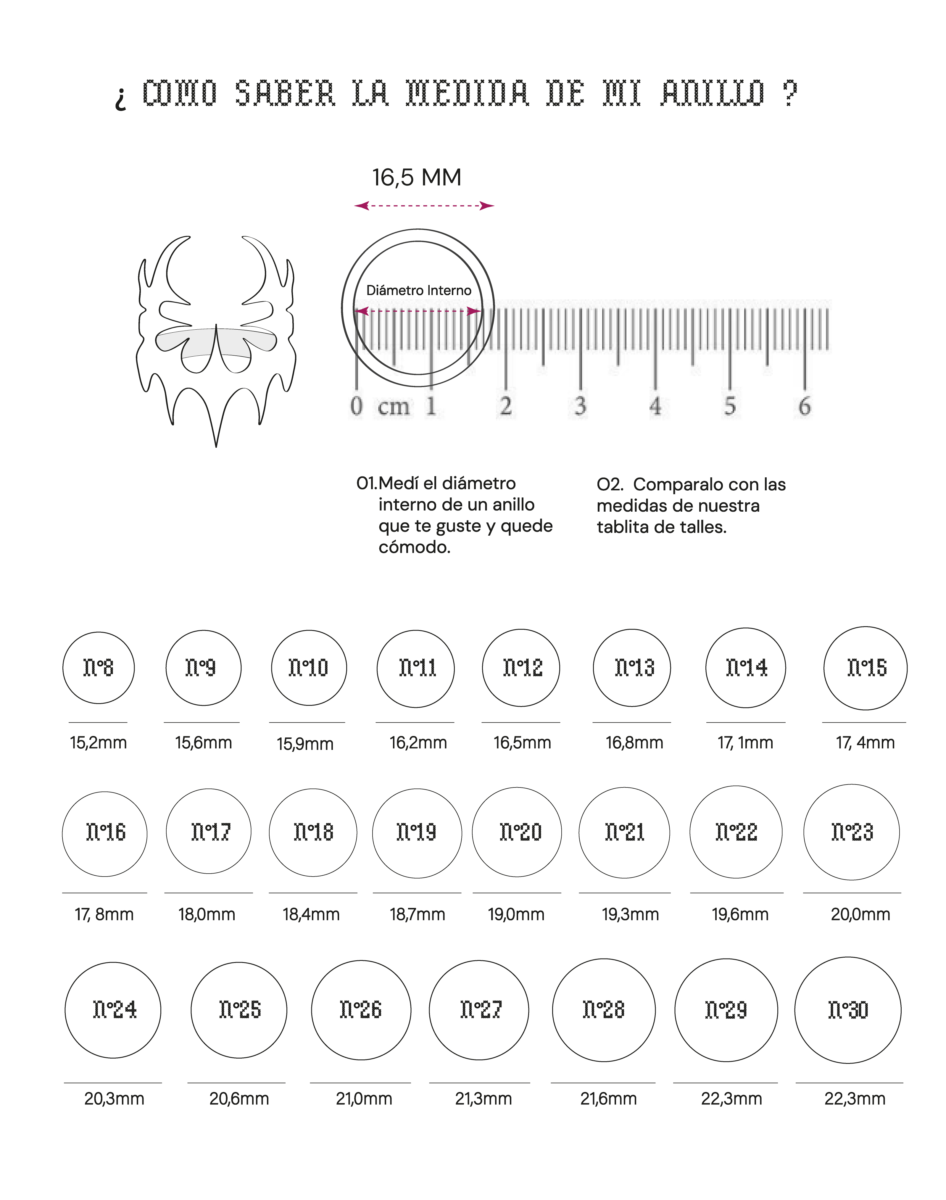 Si ninguna de las medidas corresponde a las tuyas, no dudes en escribirnos! podemos resolverlo, adaptando el anillo a tu medida ideal.